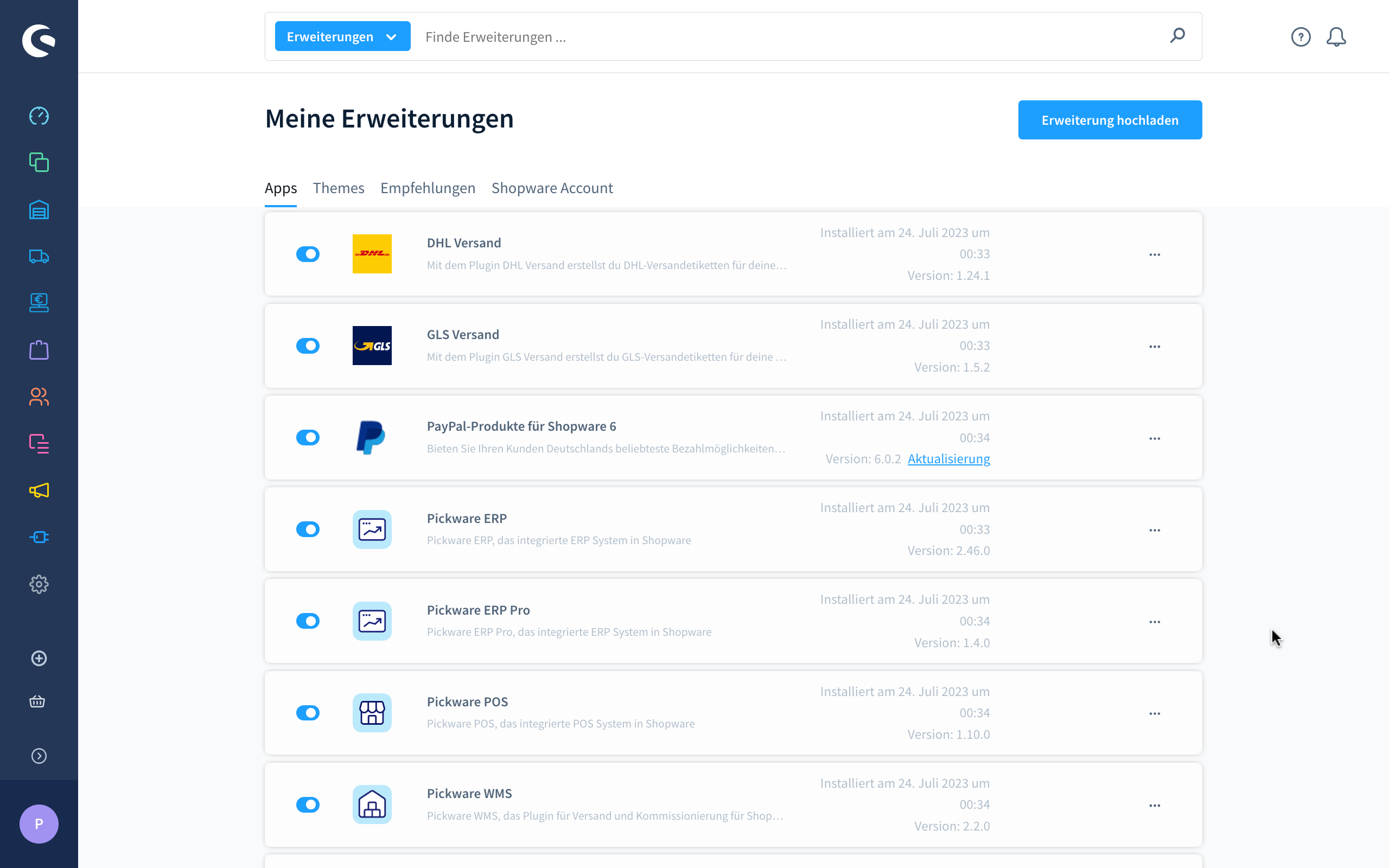 Sobald Pickware ERP, Pickware WMS, Pickware POS und ERP Pro auf die neueste Version aktualisiert wurden, aktiviere zuerst ERP und erst dann WMS, POS und ERP Pro.